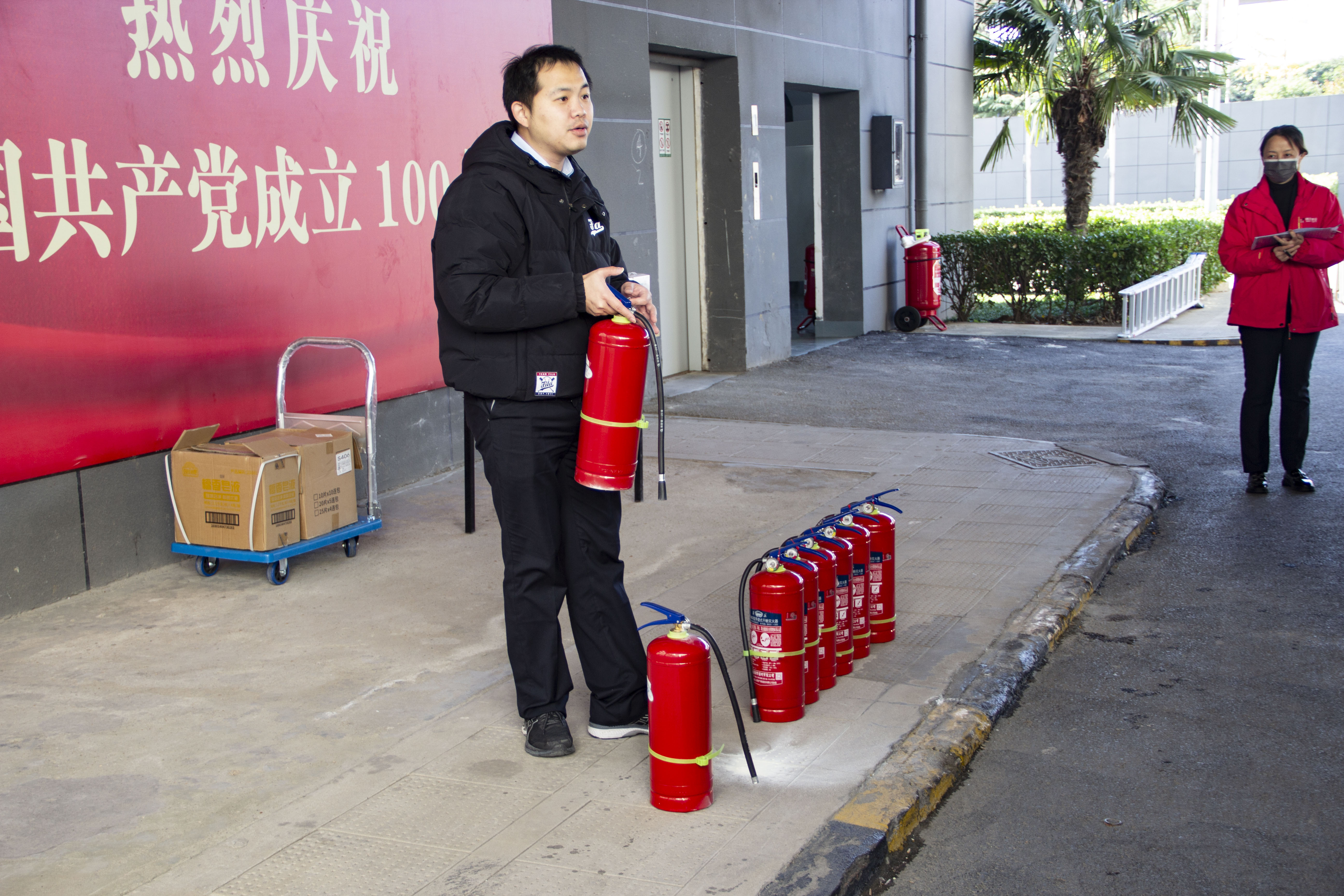 活動分為三個部分,分別是消防安全知識宣傳、滅火器的使用體驗和火場疏散逃生演習。
