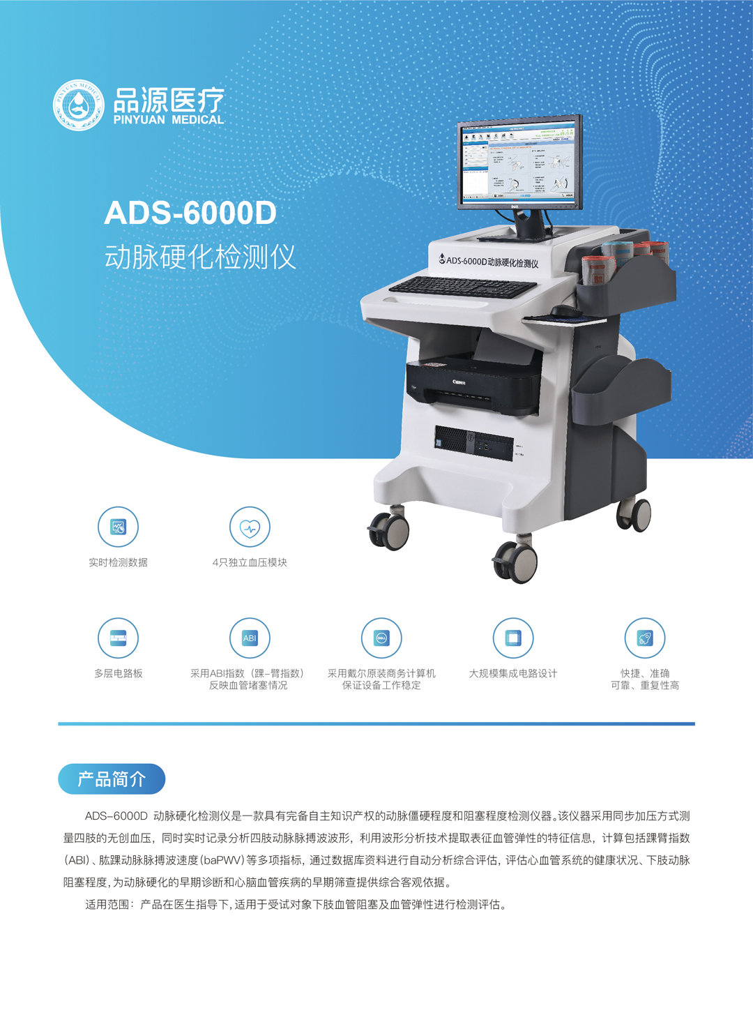 適用范圍:產(chǎn)品在醫(yī)生指導(dǎo)下,適用于受試對(duì)象下肢血管阻塞及血管彈性進(jìn)行檢測(cè)評(píng)估。