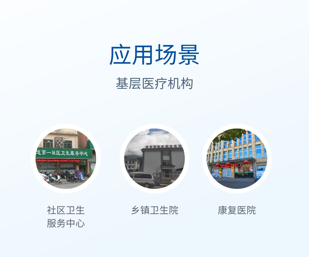 產(chǎn)品用途:本儀器適合社區(qū)服務(wù)中心、鄉(xiāng)鎮(zhèn)衛(wèi)生院、一級(jí)民營(yíng)醫(yī)院等基層醫(yī)療機(jī)構(gòu)使用,同時(shí)適用于基層專科醫(yī)療機(jī)構(gòu)如婦幼保健所、健康小屋、骨科醫(yī)院、老年病醫(yī)院、康復(fù)醫(yī)院、體檢中心等使用。